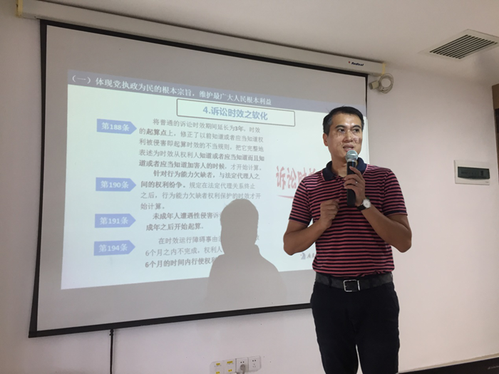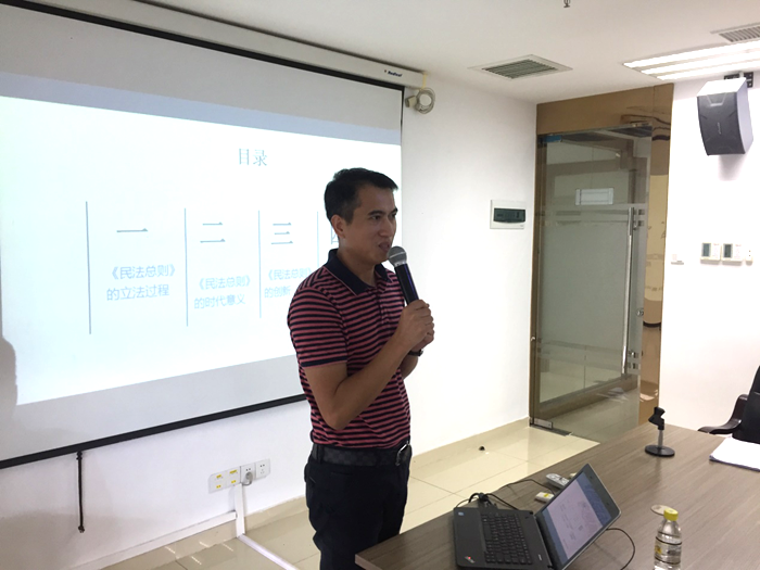 講座當中,戴律師以2017年10月份最新生效的《民法總則》為主題,從《民法總則》的立法過(guò)程講起,向大家詳細分析了背后的立法目的、立法過(guò)程和立法特點(diǎn),尤其強調其立法的民主性和科學(xué)性,以及對于我們每個(gè)人日常生活與工作的密切聯(lián)系和重大意義。