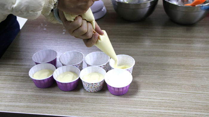 一個(gè)個(gè)金黃色的紙杯蛋糕外焦內嫩,