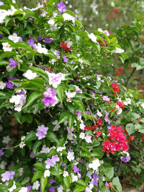 此時(shí)的紅花湖植被繁茂,花草清香,萬(wàn)紫千紅。各類(lèi)奇花異樹(shù)品種多樣,有些直接叫不出名字,同事用手機拍照識別,感受著(zhù)科技隨時(shí)隨地帶給我們知識的補給。