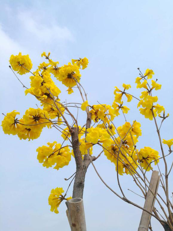3月18日早上7點(diǎn)多就起來(lái),天氣晴好風(fēng)和日麗。按計劃9:00準時(shí)到達第一站指定集合處,接近沙澳收費站的沿途高速路一側,在早晨陽(yáng)光的映襯下,滿(mǎn)眼絢麗的金黃色,樹(shù)枝不見(jiàn)一片綠葉!“忽如一夜春風(fēng)來(lái),千樹(shù)萬(wàn)樹(shù)“黃花開(kāi)”,滿(mǎn)樹(shù)金色的風(fēng)鈴花就像搖錢(qián)樹(shù)似的,金燦燦的黃花為惠州的道路景觀(guān)增添了一抹亮麗的春色。